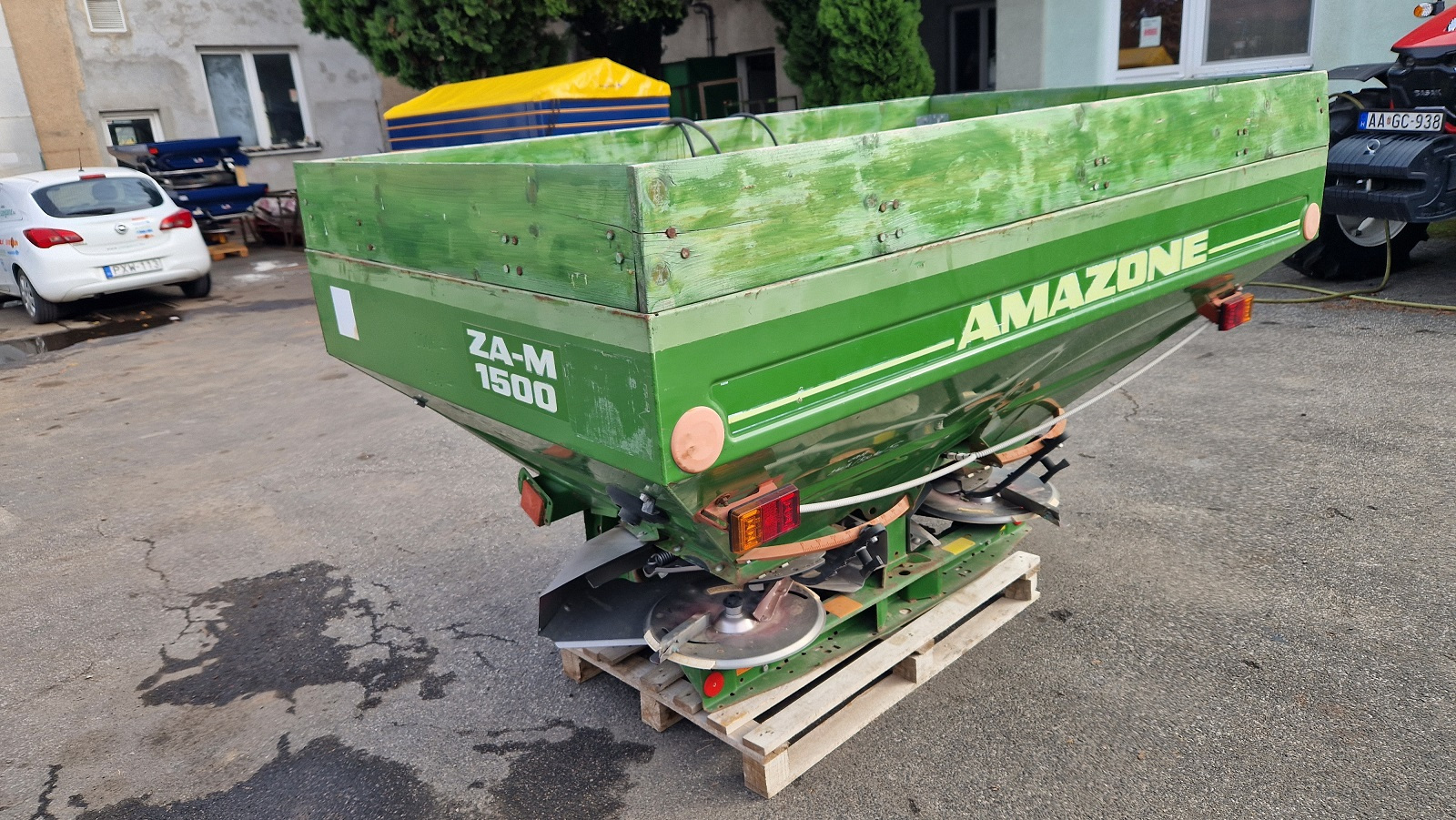 Amazone ZA-M 1500 műtrágyaszóró, 2005 évjárat, 2.200 literes tartály, 18-24 m munkaszélesség, hidraulikus nyitás, rács, kardán, világítás, szép állapot.