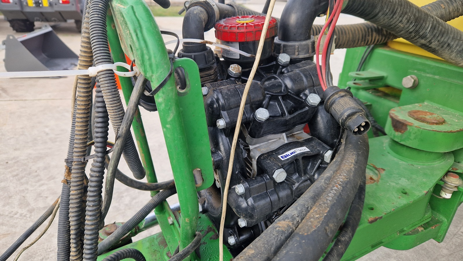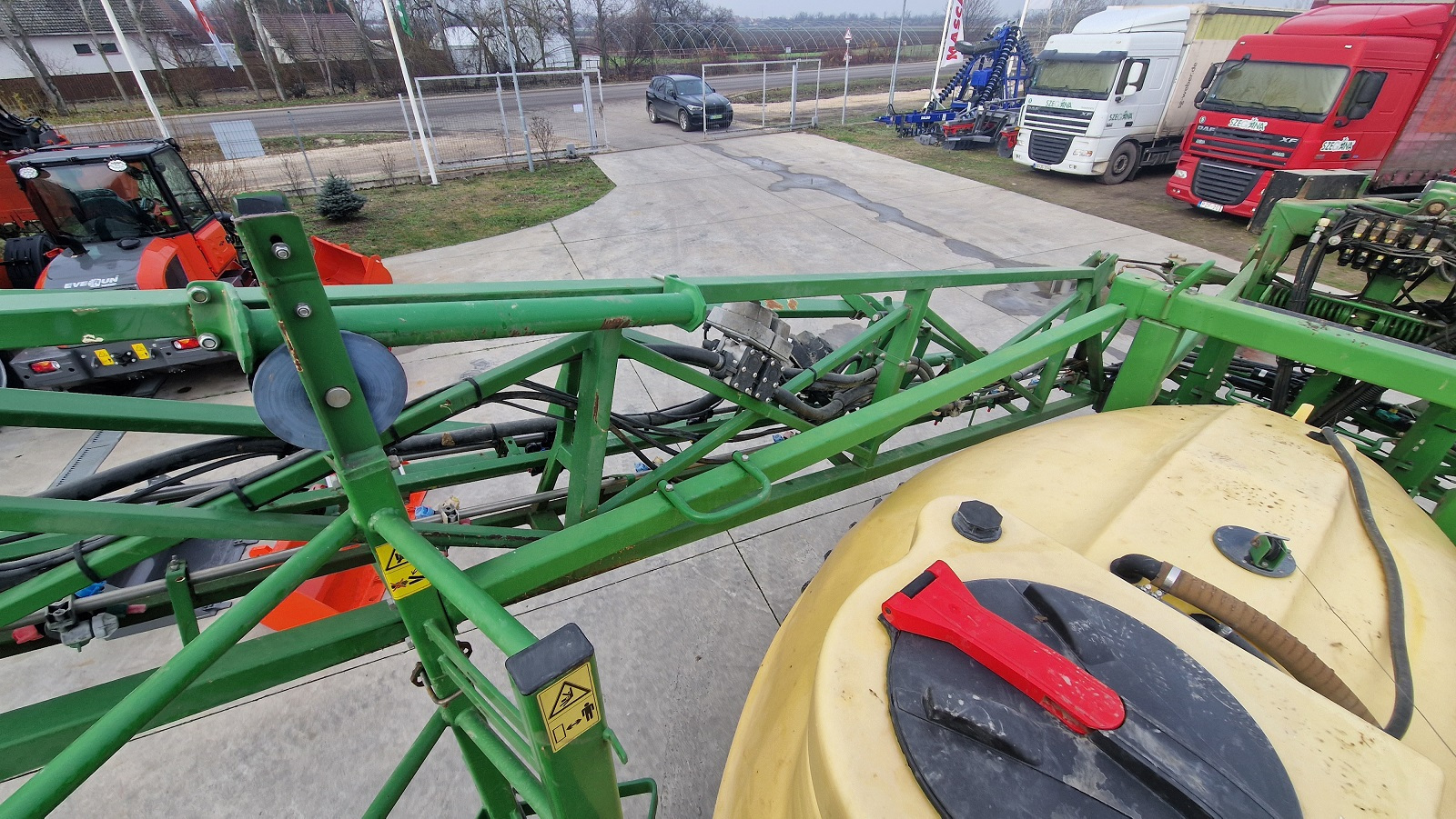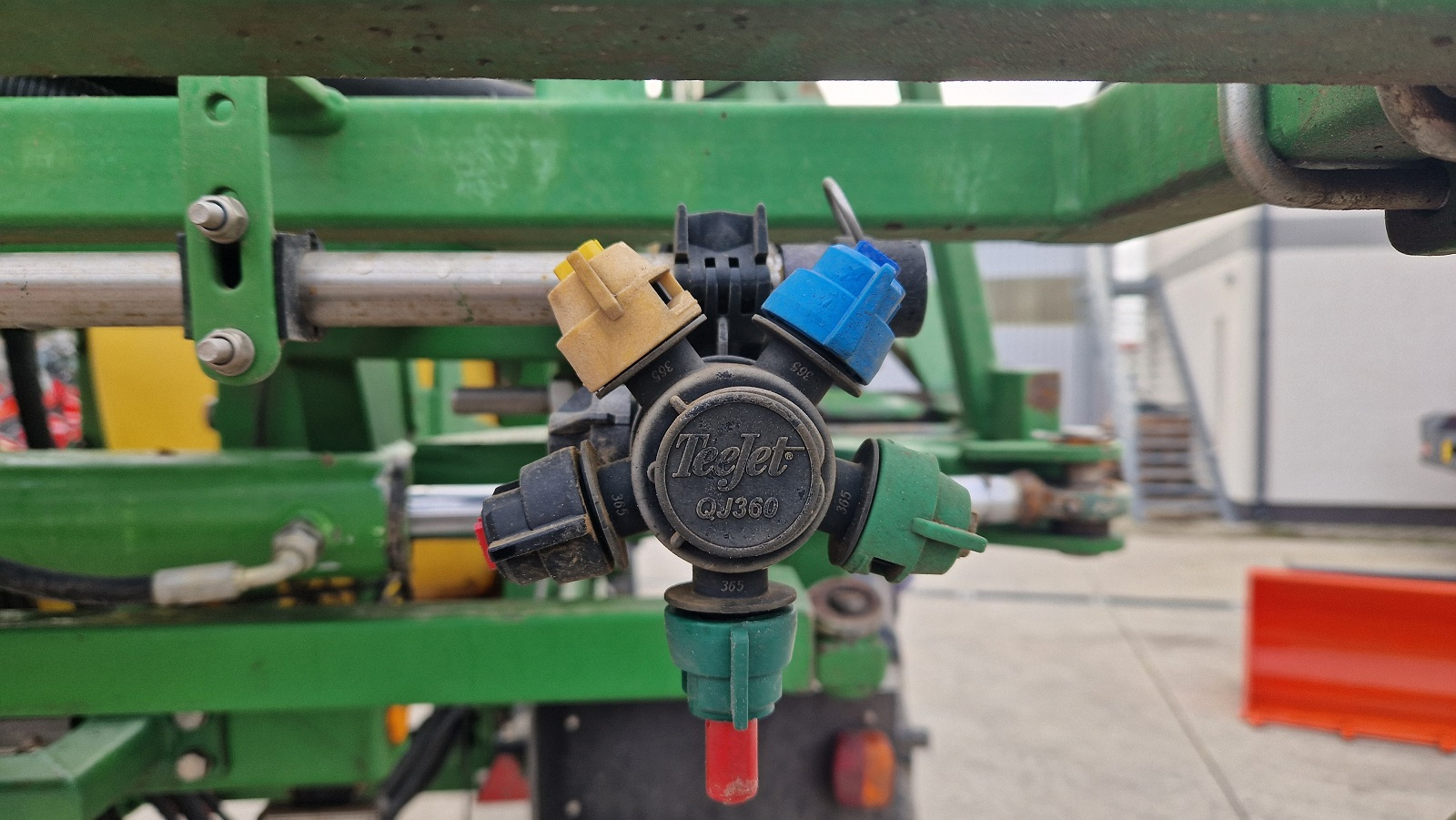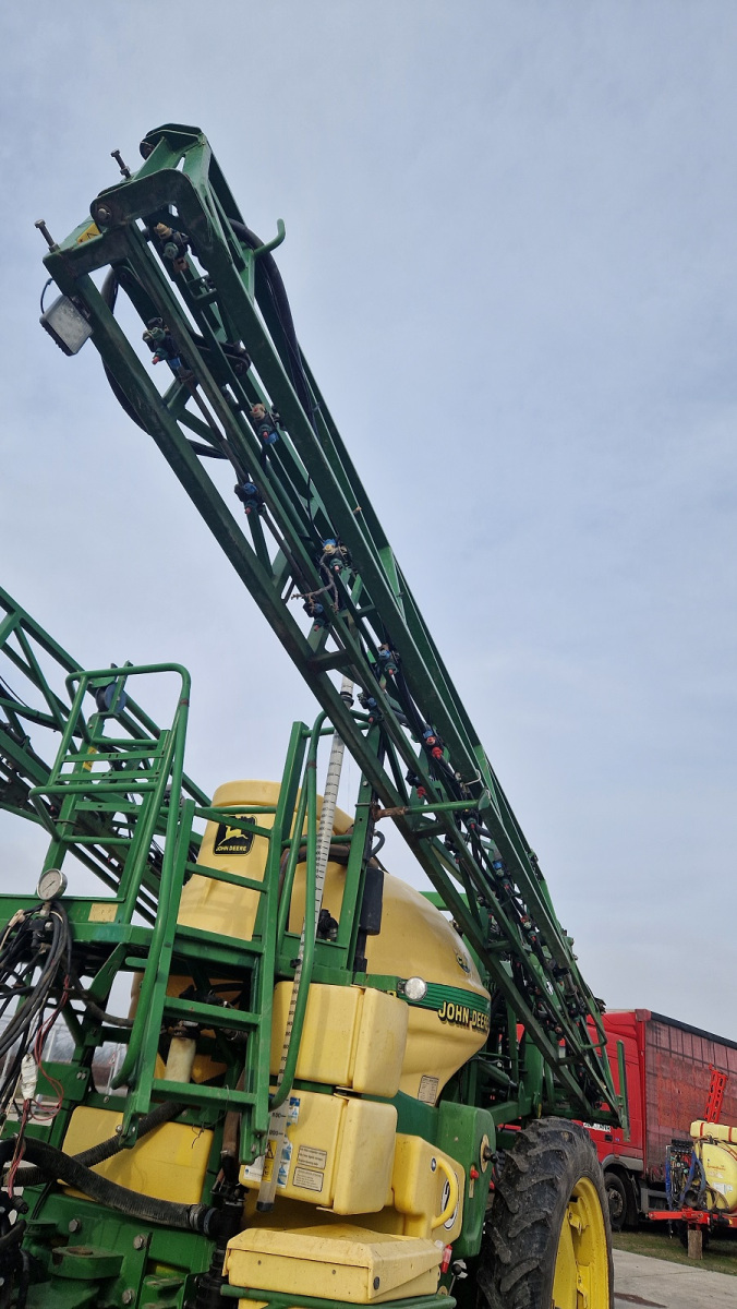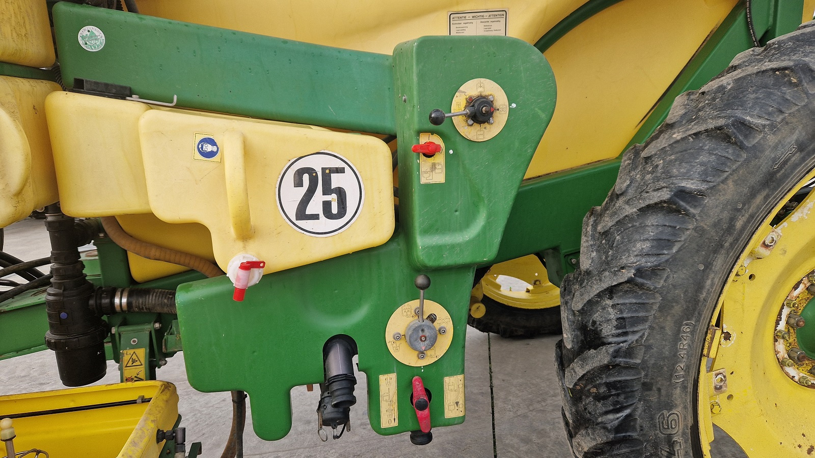 John Deere 832 vontatott szántóföldi permetező, 3.200 literes tartály, 24 m munkaszélesség, 5-ös fúvókatartó, 8 elektromos szakasz, számítógépes szabályzás, teljesen hidraulikus keretmozgatás, nyitás, billentés, oldalankénti emelés, paralelogramma keretfelfüggesztés, hidraulikus nyomkövető vonórúd, 280 liter/perc szivattyú teljesítmény, légfék, száraz tartályszintjelző, vegyszerbekeverő flakonmosóval, szép állapot.