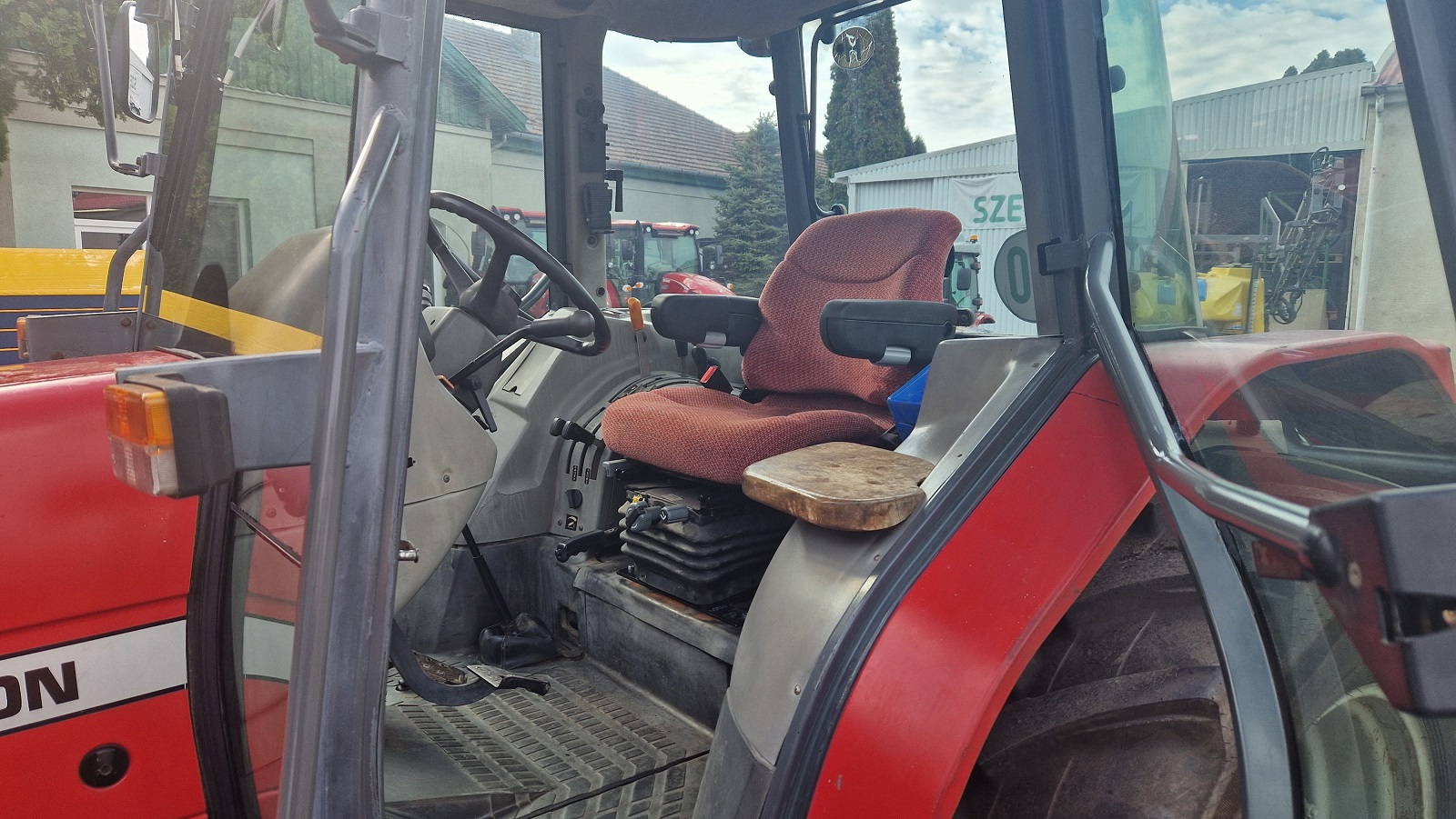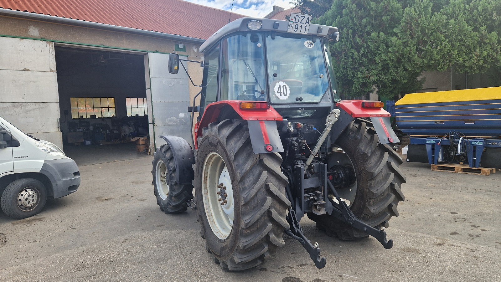Massey Fergunson 4245 traktor, 1997 évjárat, 86 LE-s 4 literes 4 hengeres Perkins motor, 11.400 üzemóra, 12 + 12 sebességes váltó, irányváltó, elektromos összkerékhajtás kapcsolás, elektromos differenciálzár kapcsolás, klíma, légfék, automata vonófej, 11.000 kg max. vontathatóság, 2030. 08-ig érvényes műszaki.