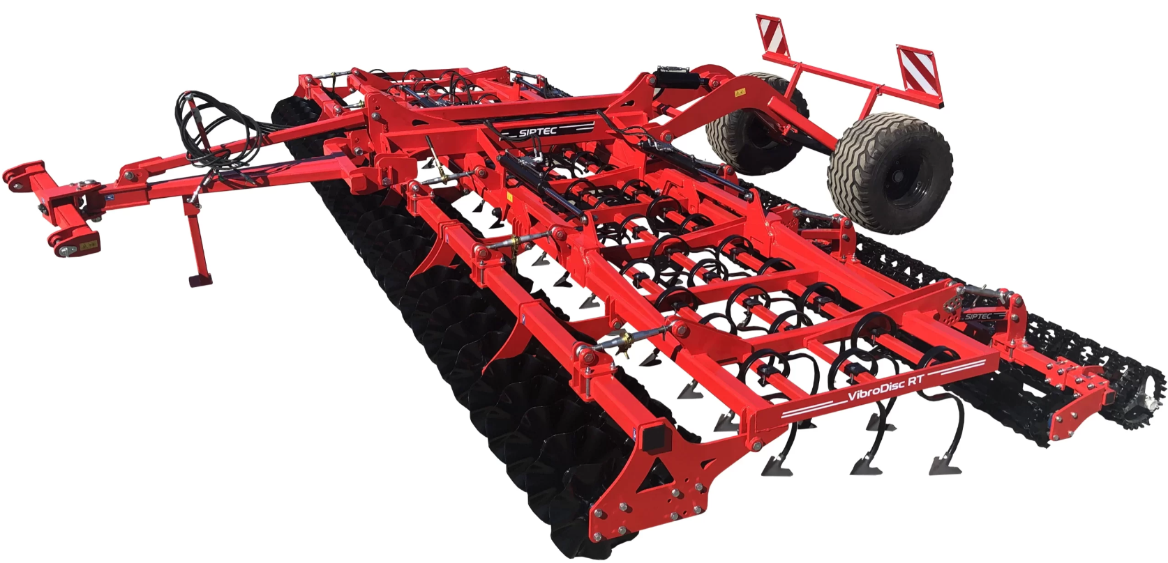 A Siptec VibroDisc RT magágykészítő kultivátor nagy területteljesítményű, precíz talaj-előkészítő gép, amely 4–9 méteres munkaszélességgel érhető el. A hidraulikus oldalirányú fel- és lehajtási rendszer kiváló szállíthatóságot biztosít, miközben a 200×200×10 mm-es, rendkívül masszív vázszerkezet nagyfokú stabilitást és hosszú élettartamot garantál intenzív üzemi körülmények között is.