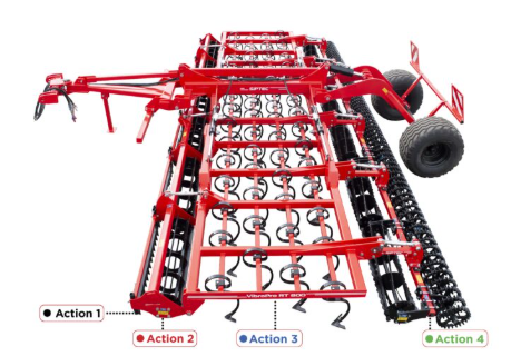 A Siptec VibroPro RT ideális választás a modern mezőgazdaságban a magágykészítéshez és a talaj precíz előkészítéséhez. A gép 4–9 méteres munkaszélességgel rendelkezik, és hidraulikusan összecsukható, így szállítása és kezelése egyszerű.